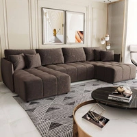 Narożnik z funkcją spania Oroso U jasny brąz pojemnik na pościel miękka tkanina typu velvet z powłoką hydrofobową ozdobne pikowania