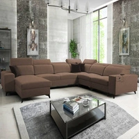 Narożnik z funkcją spania Kelly Sleek IX jasny brąz lewostronny stylowy narożnik z wygodnymi podłokietnikami i regulowanymi zagłówkami