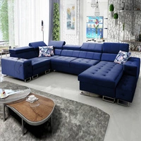 Narożnik z funkcją spania Dafni V błękitny prawostronny velvet wygodny i komfortowy narożnik z regulowanymi zagłówkami