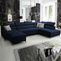 Narożnik z funkcją spania Savona VI granatowy lewostronny elegancki i komfortowy narożnik do salonu z dwoma pojemnikami na pościel