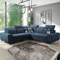 Narożnik z funkcją spania Buffalo II niebieski prawostronny funkcjonalny i stylowy narożnik rozkładany z regulowanymi zagłówkami