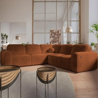 Narożnik z funkcją spania Arbon III ceglasty prawostronny wyjątkowo stylowy narożnik z pojemnikiem na pościel unikalny obły kształt