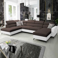 Narożnik z funkcją spania Savona brązowy / biały prawostronny elegancki narożnik z regulowanymi zagłówkami dekoracyjne przeszycia
