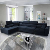 Narożnik z funkcją spania Nausa czarny lewostronny velvet stylowy komfortowy narożnik regulowane zagłówki pojemnik na pościel
