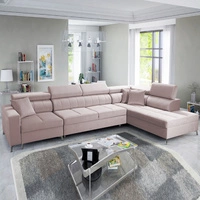 Narożnik z funkcją spania Nausa X pudrowy róż prawostronny narożnik z dwoma pojemnikami na pościel wykonanie z tkaniny typu velvet