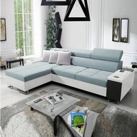 Narożnik z funkcją spania Castel II Lux błękitny prawostronny wygodny narożnik do salonu z komfortowym wysuwanym podnóżkiem