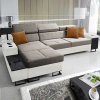 Narożnik z funkcją spania Alcamo III szary / biały lewostronny funkcjonalny narożnik z szufladą w boczku dwa pojemniki na pościel