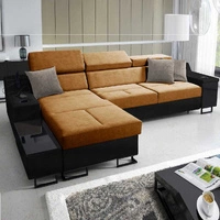 Narożnik z funkcją spania Alcamo miodowy / czarny lewostronny elegancki i stylowy narożnik z dostawką praktyczna szuflada w boczku mebla