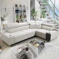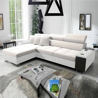 Narożnik z funkcją spania Cetara IV beżowy lewostronny stylowy design narożnika z przesuwanymi oparciami dwa pojemniki na pościel