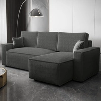 Narożnik z funkcją spania Nelo szary prawostronny praktyczny i nowoczesny narożnik pokryty sztruksową tkaniną pojemnik na pościel