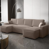 Narożnik z funkcją spania Nelo U beżowy komfortowy i nowoczesny narożnik z pojemnikiem na pościel sztruksowa prążkowana tkanina