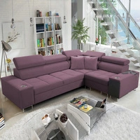 Narożnik z funkcją spania Dafni II wrzosowy prawostronny velvet narożnik z pojemnikiem na pościel szuflada z pełnym wysuwem