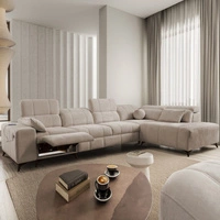 Narożnik z funkcją spania Penejos VII beżowy lewostronny stylowy narożnik z pojemnikiem na pościel wygodne regulowane zagłówki
