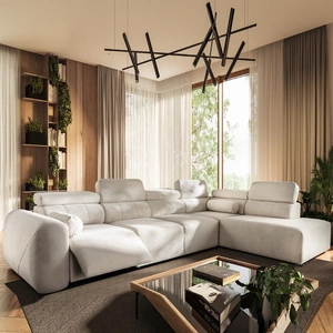 Narożnik z funkcją spania Cantare VIII Lux kość słoniowa lewostronny designerski narożnik z elektrycznie podnoszonym podnóżkiem