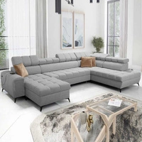Narożnik z funkcją spania Dafni V błękitny lewostronny velvet wygodny i komfortowy narożnik z regulowanymi zagłówkami