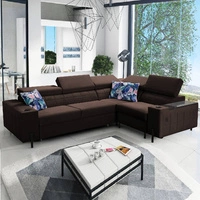 Narożnik z funkcją spania Belvi II brązowy lewostronny elegancki i ergonomiczny narożnik do salonu praktyczny schowek w boczku