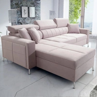 Narożnik z funkcją spania Nausa pudrowy róż lewostronny velvet stylowy komfortowy narożnik regulowane zagłówki pojemnik na pościel