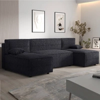 Narożnik z funkcją spania Brandon U czarny pojemnik na pościel miękka tkanina o charakterystycznej pętelkowej powierzchni