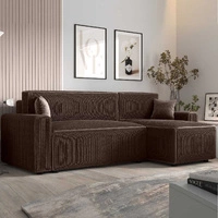 Narożnik z funkcją spania Brandon Bis brązowy prawostronny trójwymiarowa tkanina o wyrazistych prążkach pojemnik na pościel