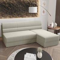 Narożnik z funkcją spania Fogu kość słoniowa prawostronny narożnik o prostym designie pokryty sztruksową tkaniną pojemnik na pościel