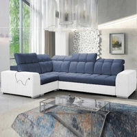 Narożnik z funkcją spania Luigi II niebieski / biały lewostronny komfort podczas codziennego wypoczynku narożnik z pojemnikiem na pościel