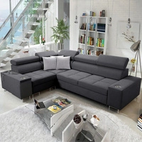 Narożnik z funkcją spania Castel III grafitowy lewostronny narożnik z dwoma pojemnikami na pościel regulowane zagłówki
