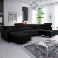 Narożnik z funkcją spania Nausa VI czarny lewostronny stylowy narożnik do salonu o komfortowym wykończeniu miękka tkanina typu velvet