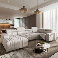 Narożnik z funkcją spania Castel IV beżowy lewostronny stylowy narożnik z pojemnikami na pościel i regulowanymi zagłówkami