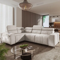 Narożnik z funkcją spania Castel II beżowy lewostronny komfortowy narożnik z regulowanymi zagłówkami pojemnik na pościel