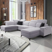 Narożnik z funkcją spania Kelly Sleek VI szary popiel prawostronny nowoczesny design narożnik do salonu z regulowanymi zagłówkami