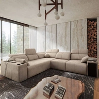 Narożnik z funkcją spania Tesalia III beżowy prawostronny komfortowy narożnik z przesuwanym oparciem dwa pojemniki na pościel