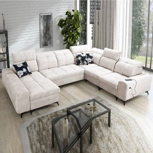 Narożnik z funkcją spania Selva U jasny beż ciekawie prezentujący się narożnik wykonany z tkaniny o pluszowej powierzchni