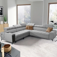 Narożnik z funkcją spania Viano jasny szary prawostronny stylowy narożnik o ciekawym kształcie regulowane zagłówki ozdobne poduszki