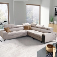 Narożnik z funkcją spania Viano XII jasny brąz prawostronny narożnik o ciekawym kształcie regulowane zagłówki ozdobne poduszki