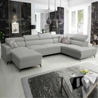 Narożnik z funkcją spania Rava VII jasny beż lewostronny praktyczny i nowoczesny narożnik do salonu z regulowanymi zagłówkami