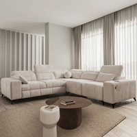 Narożnik z funkcją spania Neron beżowy prawostronny gwarantuje najwyższy komfort i funkcjonalność