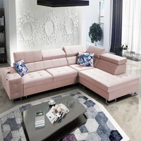 Narożnik z funkcją spania Ganta pudrowy róż prawostronny nowoczesna tkanina welurowa gwarantuje najwyższy komfort i funkcjonalność
