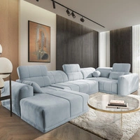 Narożnik z funkcją spania Castel XII błękitny lewostronny stylowy i wygodny narożnik do salonu funkcjonalne regulowane zagłówki