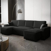 Narożnik z funkcją spania Nelo U czarny komfortowy i nowoczesny narożnik z pojemnikiem na pościel sztruksowa prążkowana tkanina