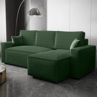 Narożnik z funkcją spania Laredo zielony prawostronny komfortowy i stylowy narożnik rozkładany z pojemnikiem na pościel