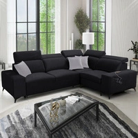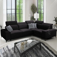 Narożnik z funkcją spania Gentle czarny lewostronny stylowy design narożnik rozkładany charakteryzujący się obłym kształtem