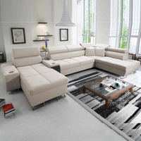 Narożnik z funkcją spania Castel VII beżowy lewostronny stylowy narożnik z pojemnikiem na pościel i regulowanymi zagłówkami