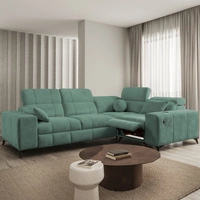 Narożnik z funkcją spania Luigi VII turkusowy prawostronny komfortowy narożnik rozkładany utrzymany w nowoczesnej formie