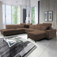 Narożnik z funkcją spania Kelly Sleek X jasny brąz prawostronny niezwykle elegancki narożnik do salonu z regulowanymi zagłówkami