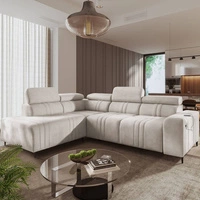 Narożnik z funkcją spania Castel VII beżowy lewostronny stylowy narożnik z pojemnikiem na pościel i regulowanymi zagłówkami