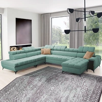 Narożnik z funkcją spania Bolmso X miętowy prawostronny wygodny narożnik do salonu z regulowanymi zagłówkami dekoracyjne pikowania