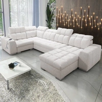 Narożnik z funkcją spania Fogu U II kość słoniowa wygodny narożnik z komfortowymi podłokietnikami ciekawy design pojemnik na pościel