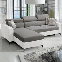 Narożnik z funkcją spania Provo III siwy / biały lewostronny narożnik z pojemnikiem na pościel i regulowanymi zagłówkami
