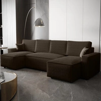 Narożnik z funkcją spania Nelo U brązowy komfortowy i nowoczesny narożnik z pojemnikiem na pościel sztruksowa prążkowana tkanina