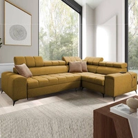Narożnik z funkcją spania Wilkins musztardowy prawostronny stylowy i nowoczesny design wpisujący się w każdą aranżację